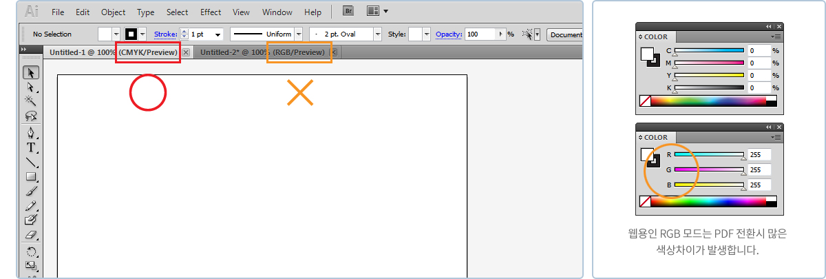 CMYK 모드로 작업