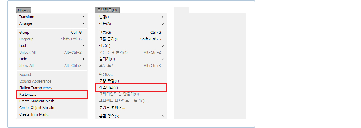 : 그림자, 그라디에이션 패턴, 투명도 등의 효과를 사용한 부분은 비트맵 처리되어야 합니다.